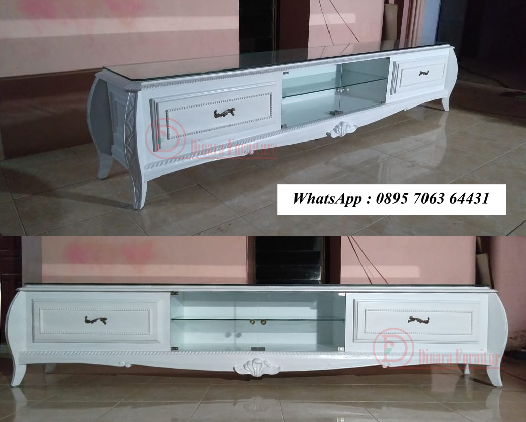 » meja tv klasik modern putih panjang 3 meter_dinara furniture